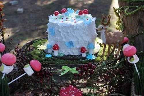 Mmmm… En este bosquecillo, puedes encontrarte con Caperucita Roja y su cesta de viandas… Pero no sólo hay que cuidar la presentación con objetos rústicos, setas y brezo… También la merienda tiene que ser acorde con la temática de la fiesta: por ejemplo, un tronco de chocolate, tartaletas con frutas del bosque, rosquillas de la abuela, los macarones de tonos intensos con un matiz pastel, los champiñones hechos con una nube de azúcar blanca y pequeños merengues…