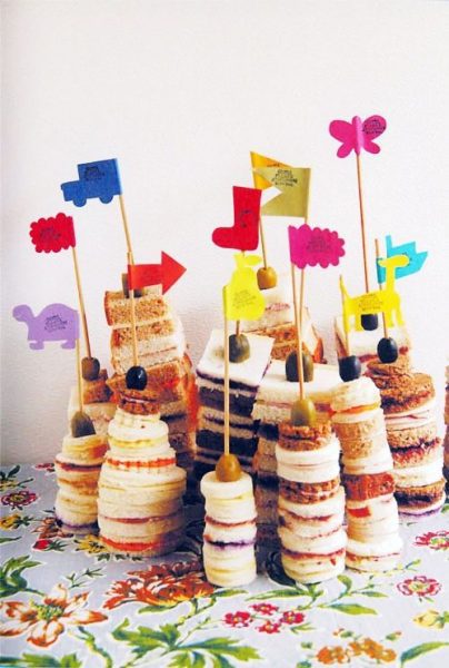 Los niños son seres increíbles con una capacidad de fascinación que a los mayores nos encanta. Por eso, si les pones una mesa tan linda como ésta, qué niño no tomará una brocheta de sandwiches en cada mano y repetirá que se lo va a comer todo, todo…